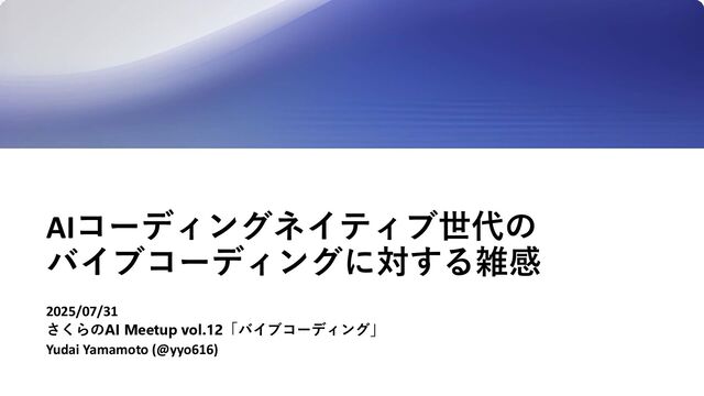 AIコーディングネイティブ世代の バイブコーディングに対する雑感 2025/07/31 さくらのAI Meetup vol.12「バイブコーディング」 Yudai Yamamoto (@yyo616)
