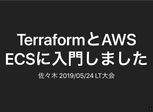 TerraformとAWS TerraformとAWS ECSに入門しました ECSに入門しました 佐々木 2019/05/24 LT大会 佐々木 2019/05/24 LT大会