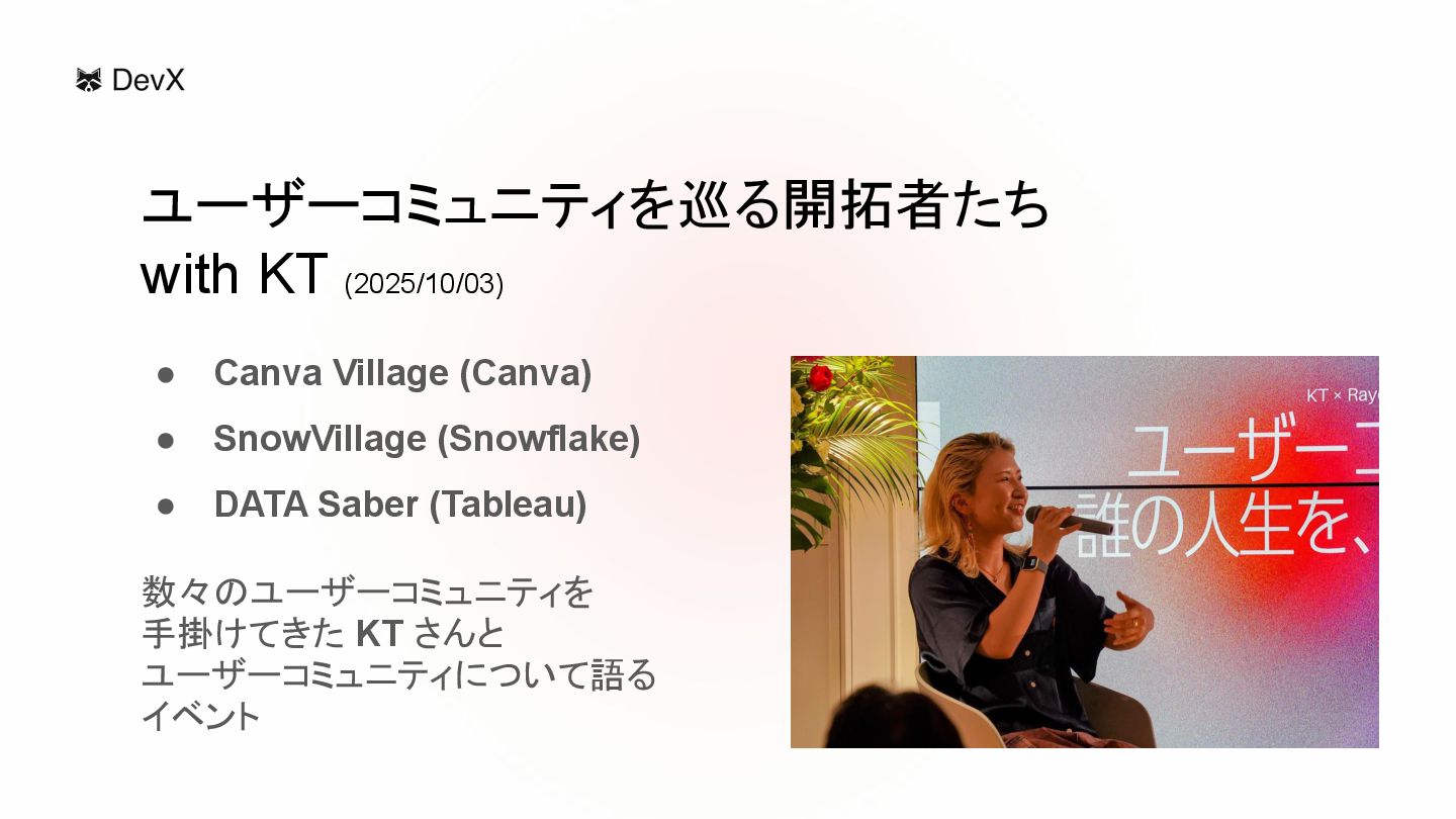(Tableau) 数々のユーザーコミュニティを 手掛けてきた KT さんと ユーザーコミュニティについて語る イベント ユーザーコミュニティを巡る開拓者たち with KT (2025/10/03)
