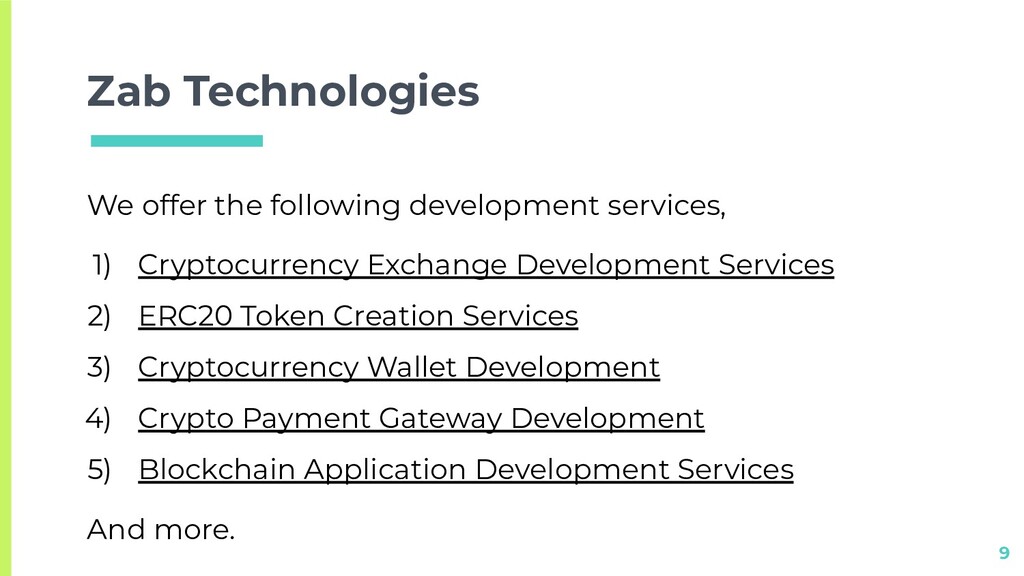 Zab Technologies - Top-notch cryptocurrency exchange development company in the crypto space. Having more than 40+ experienced cryptocurrency exchange developers and a supportive team. So, If you have any idea starting a cryptocurrency exchange business. Then you can hire the Zab experts who can build an effective and secured exchange trading platform.
