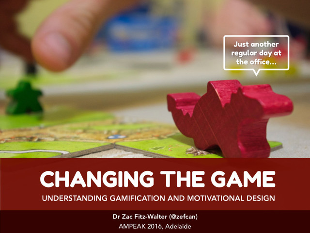 In this presentation we undertake a journey into the realm of games to explore what exactly gamification is and how it might be used effectively in the workplace.