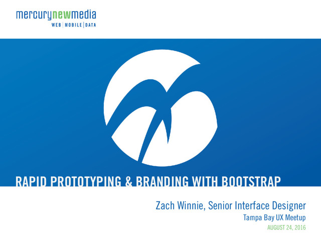 I LISTEN TO YOU? UX Research, strategy, sketches, wireframes, paper prototyping, information architecture, flows, usability, user feedback, accessibility UI Photoshop (Artboards & Generator), Illustrator, InDesign, Acrobat, Sketch, branding, print Front End Design & Development HTML, CSS, JS, jQuery, Node, ReactJS, Grunt & Gulp, style guides, linting, SonarQube, Selenium & functional testing, browser testing & compatibility, WordPress/Sitefinity/other CMS’s, MVC .NET, PHP, MySQL, SQL, Git Agile & Scrum Sometimes scrum master & sometimes fill-in product owner Mentor to 3 other Interface teammates and many more developers RAPID PROTOTYPING & BRANDING WITH BOOTSTRAP WITH ZACH WINNIE – TAMPA BAY UX MEETUP