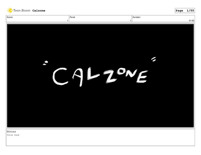 Scene 1 Panel 1 Duration 01:00 Notes Title Card Calzone