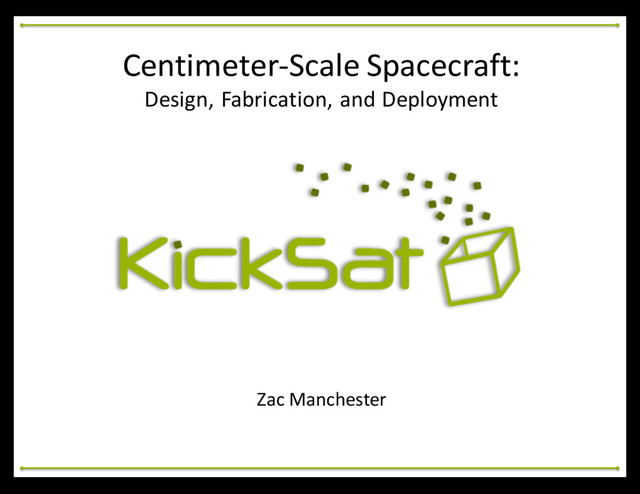 for 21st Century Missions,” AIAA Space Technology Conference and Exposition, Albuquerque, NM, Sept. 28-‐30, 1999. Barnhart, D. J., Vladimirova, T., and Sweeting, M. N., “Satellite-‐on-‐a-‐ Chip Development for Future Distributed Space Missions,” CANEUS 2006 Conference, Aug. 27-‐Sept. 1, 2006. Barnhart, D. J., Vladimirova, T., Baker, A. M., and Sweeting, M. N., “A Low-‐Cost Femtosatellite to Enable Distributed Space Missions,” 57th International Astronautical Congress, Valencia, Spain, Oct. 2-‐6, 2006. Barnhart, D. J., Vladimirova, T., and Sweeting, M. N., “Very-‐Small-‐Satellite Design for Distributed Space Missions,” Journal of Spacecraft and Rockets, Vol. 46, No. 2, 2009, pp. 469-‐472. Atchison, J. A., and Peck, M. A., “A Millimeter-‐Scale Lorentz-‐Propelled Spacecraft,” AIAA Guidance, Navigation and Control Conference and Exhibit, Hilton Head, SC, Aug 20-‐23, 2007. Atchison, J. A., Manchester, Z. R., and Peck, M. A., "MicroscaleAtmospheric Reentry Sensors," 7th International Planetary Probe Workshop, Barcelona, Spain, June 14-‐18, 2010. Atchison, J. A., and Peck, M. A., “A Passive, Sun-‐Pointing, Millimeter-‐Scale Solar Sail,” Acta Astronautica, 2010, Vol. 67, No. 1, pp. 108-‐121. Atchison, J. A., and Peck, M. A., “Length Scaling in Spacecraft Dynamics,” Journal of Guidance, Control, and Dynamics, Vol. 34, No. 1, 2011, pp. 231-‐246. Colombo, C., and McInnes, C. R., “Orbital dynamics of Earth-‐orbiting ‘smart-‐dust’ spacecraft under the effects of solar radiation pressure and aerodynamic drag,” AIAA/AAS Astrodynamics Specialist Conference, Toronto, Canada, Aug. 2-‐5, 2010. Colombo, C., and McInnes, C. R., “Orbit Design for Future Spacechip Swarm Missions,” 61st International Astronautical Congress, Prague, Czech Republic, Sept. 27-‐Oct. 1, 2010. McInnes, C. R., Ceriotti, M., Colombo, C., et. Al., “Micro-‐to-‐Macro: Astrodynamicsat Extremes of Length-‐scale,” Acta Futura, Vol. 4, 2011, pp. 81-‐97. Colombo, C., Lucking, C., and McInnes, C. R., “Orbital dynamics of high area-‐to-‐mass ratio spacecraft with J2 and solar radiation pressure for novel Earth observation and communication services,” Acta Astronautica, Vol. 81, No. 1, 2012, pp. 137-‐150. Centimeter-‐Scale Spacecraft