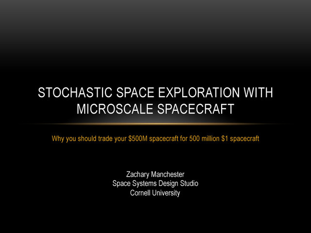 ChipSats can be deployed in large numbers • Probabilities and confidence intervals associated with mission objectives can be rigorously calculated • Successful missions can be designed even for very low probabilities of individual success 15 FUTURE WORK • Impact survival model • Include perturbations and uncertainty in dynamics • Develop a general mission planning framework