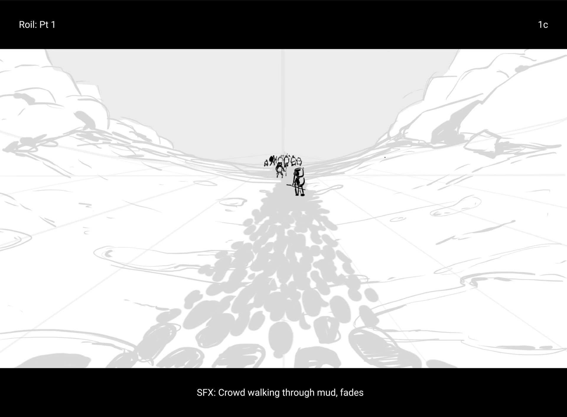 Roil: Pt 1 1c SFX: Crowd walking through mud, fades