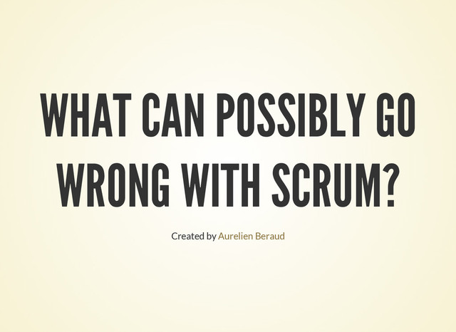 WHAT CAN POSSIBLY GO WRONG WITH SCRUM? Created by Aurelien