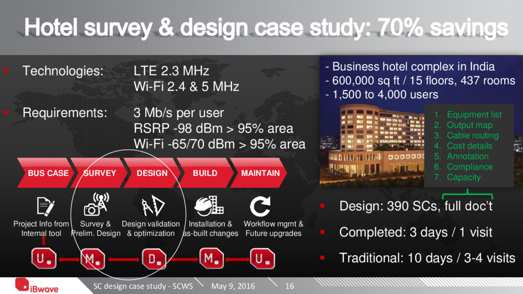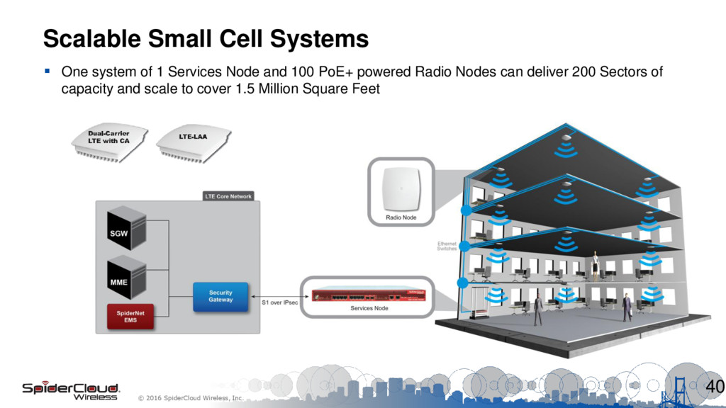 SpiderCloud Call centre: Macro RF Planning Incorporating Enterprise Small Cells iBwave Hotel survey & design Cisco Windsor Hotel Brazil Nokia Connected carnival and world’s largest building Parallel Small Cells at the Superbowl Huawei Vodafone coverage of MWC16 with Lampsite2.0 Commscope Sprint Small-Medium Enterprise Deployment Softbank Enterprise LTE Small Cells Campus Call centre Hotel Hotel Events (in, outd) Event outdoor Event indoor Sm-Med enterprises Today’s deployment story themes Office, warehouse Type