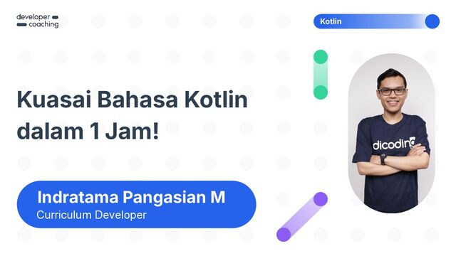 Ingin belajar Kotlin dari nol dan langsung praktek? Yuk, gabung di sesi Dev Coach ini! Dalam 1 jam, kita akan belajar dasar-dasarnya dan setup IDE untuk Kotlin
