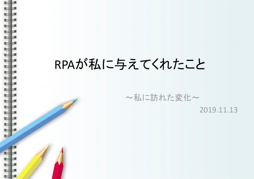 ~私に訪れた変化~ 2019.11.13 RPAが私に与えてくれたこと