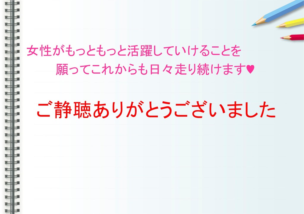 女性がもっともっと活躍していけることを 願ってこれからも日々走り続けます♥ ご静聴ありがとうございました