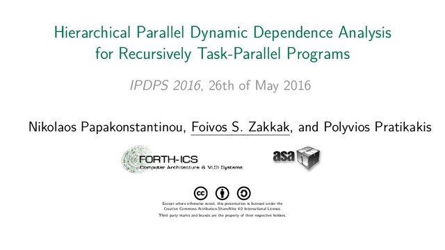 2016, 26th of May 2016 Nikolaos Papakonstantinou, Foivos S. Zakkak, and Polyvios Pratikakis Except where otherwise noted, this presentation is licensed under the Creative Commons Attribution-ShareAlike 4.0 International License. Third party marks and brands are the property of their respective holders.