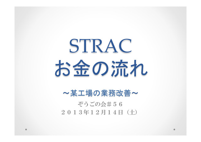人件費 その他 ◯ 売上げ • 新規顧客獲得 • 春節前活動対象の進捗 • 前職時の名刺へ連絡 • 既存顧客 • FAXコミュニケーション • 重点顧客選択 • 定期訪問 • 売上げ漏れ防止 • 依頼票ルート改善 • 売上げBOX導入 ◯ 粗利 • 変動費削減 • 価格アップ • 端数切捨て削減 • おつりBOX導入 • 価格アップ対策の検討 ◯ 変動費 • 材料費・副資材費・光熱費の削減 • 不良率改善 • 新規洗浄機の導入 • 品質管理項目の定期管理 • 品質会議より作業改善 • 入出庫管理による使用量削減 ◯ 人件費 • 自動機の導入 • 作業効率の改善 • 非採算人員の交代・削減 • 不良率改善にて残業代削減 ◯ その他 • 節税 • 管理業務の効率改善 • 見える化! • 記録化! 増加活動 削減活動