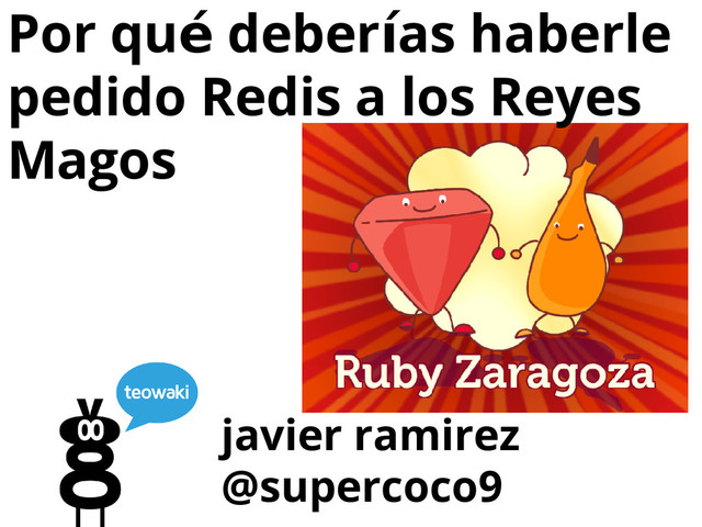 Todo el mundo está usando Redis, y con motivo: Es rápido, es fácil y es web scale. Pero Redis puede hacer muchas más cosas de las típicas para las que lo usa la comunidad Ruby. En esta charla hablaré sobre lo que se puede hacer con Redis, cómo lo están usando empresas como twitter o pinterest, las cosas que no deberías hacer con redis, algunos patrones interesantes de uso, y cómo lo estamos usando en teowaki para resolver un montón de problemas.