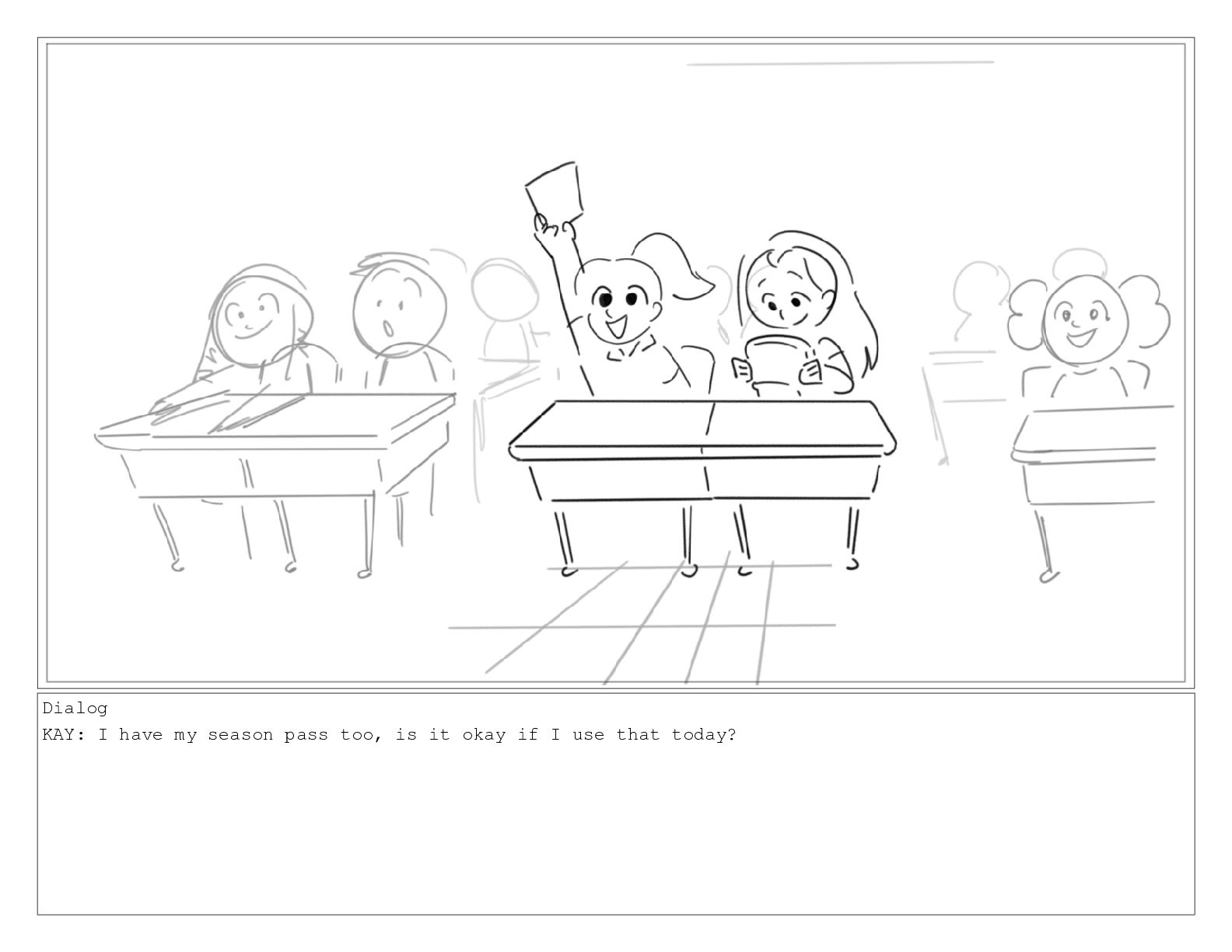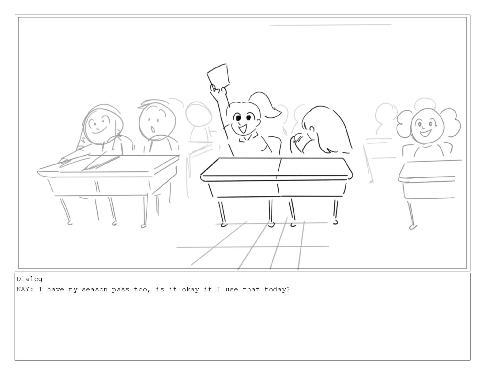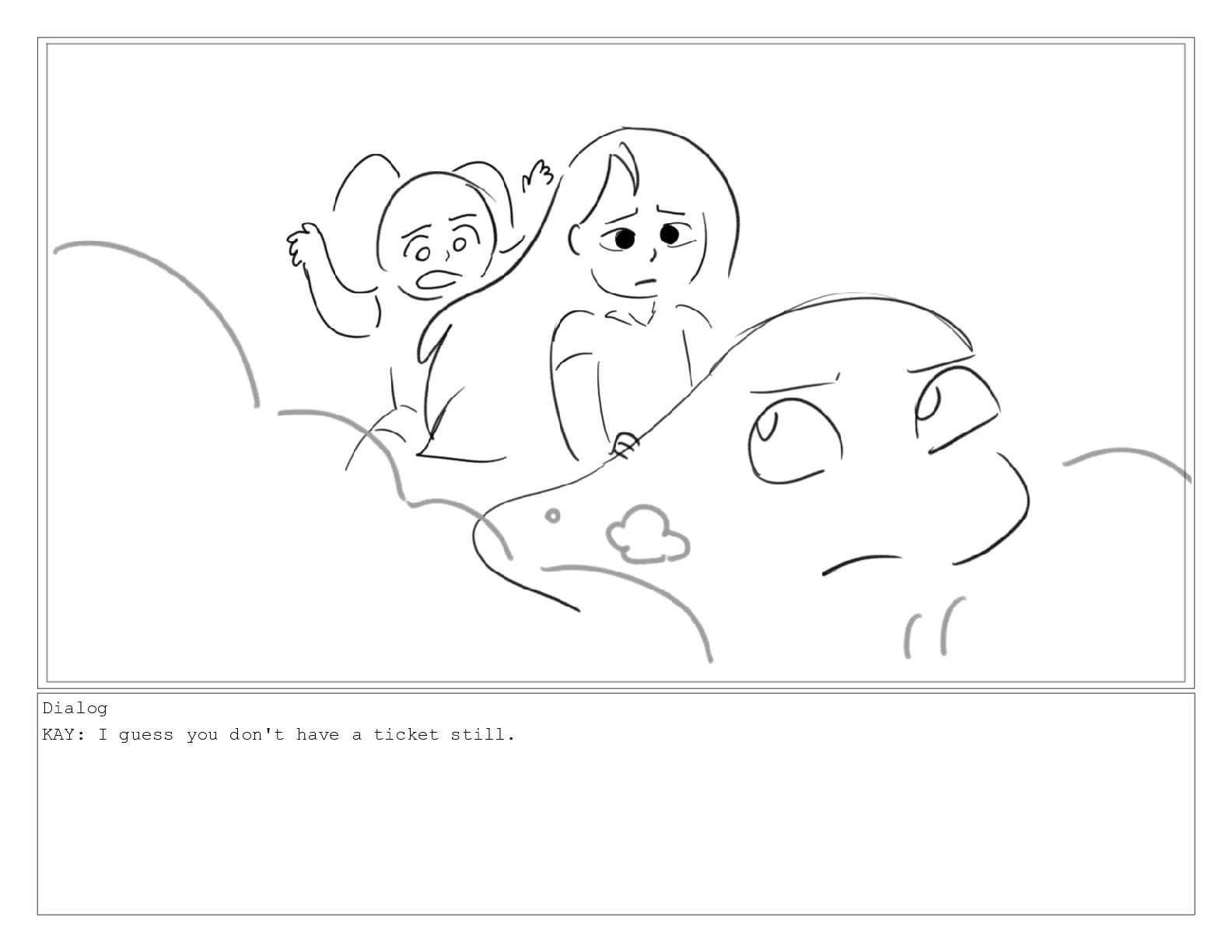 Dialog KAY: I guess you don't have a ticket still.