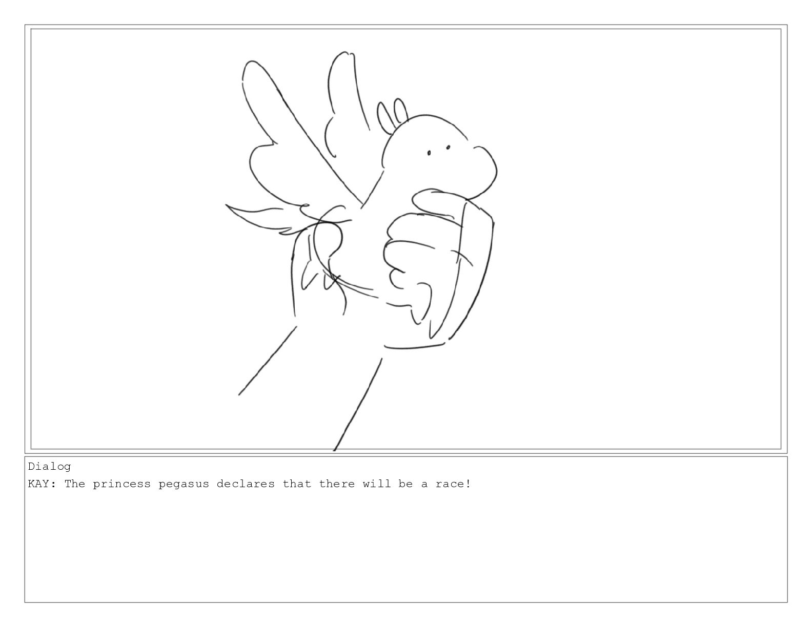 Dialog KAY: The princess pegasus declares that there will be