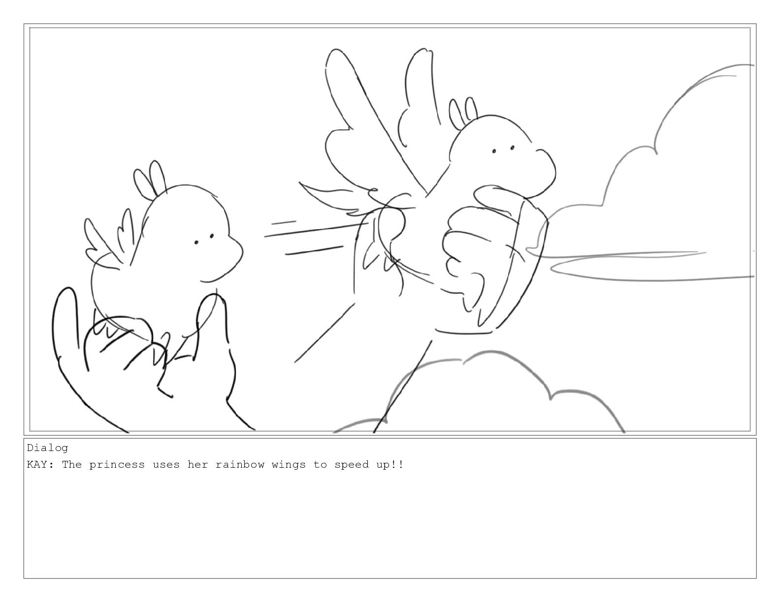 Dialog KAY: The princess uses her rainbow wings to speed