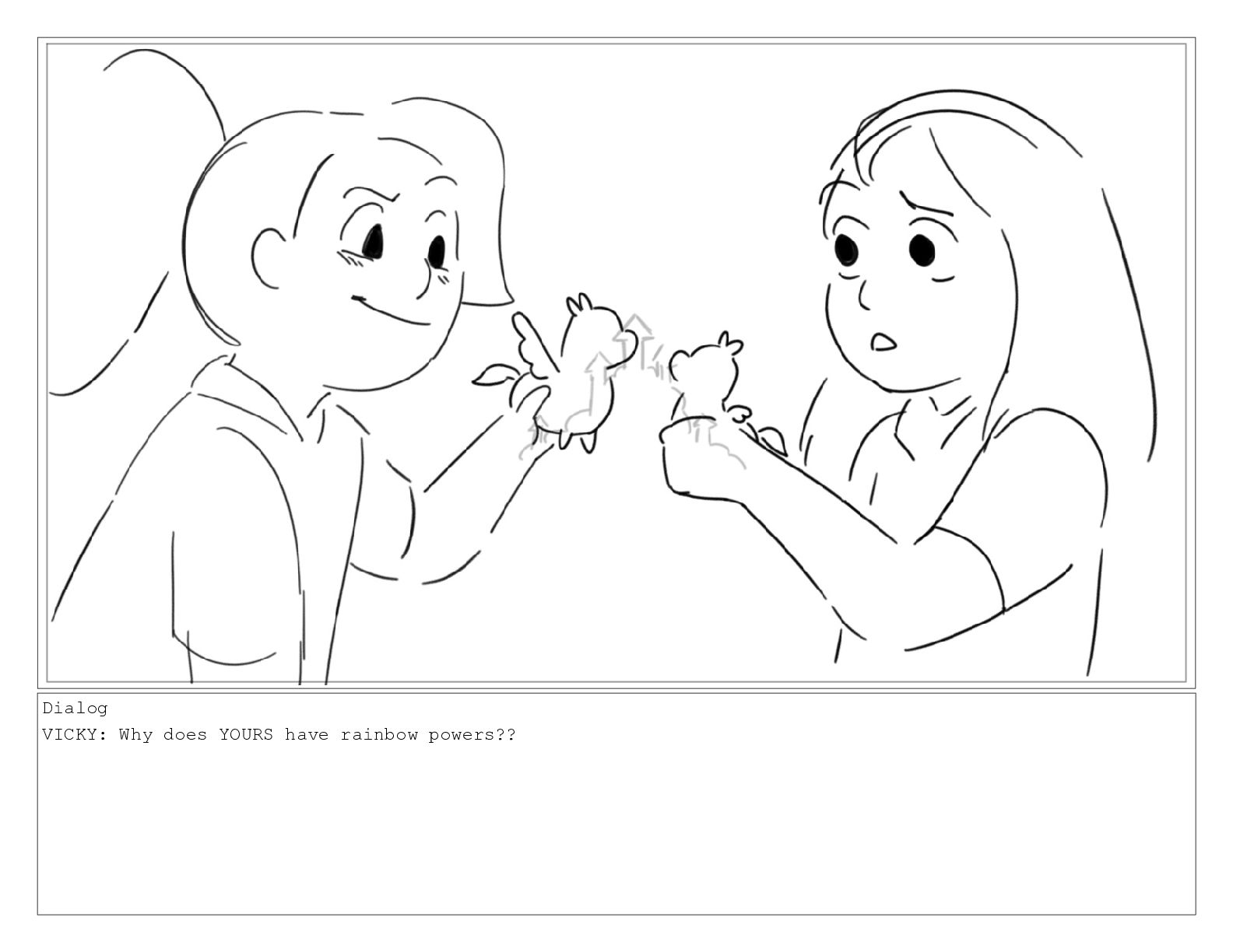 Dialog VICKY: Why does YOURS have rainbow powers??