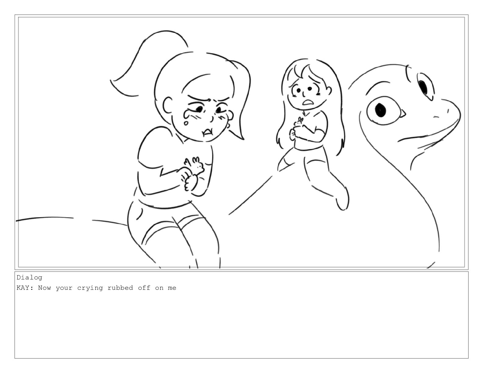 Dialog KAY: Now your crying rubbed off on me