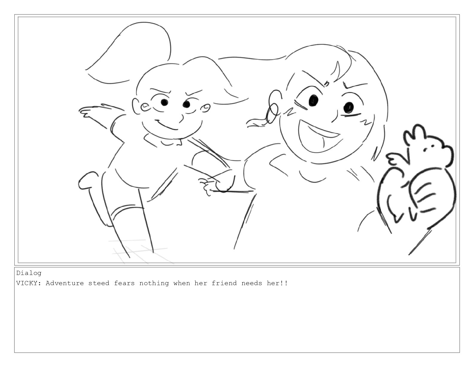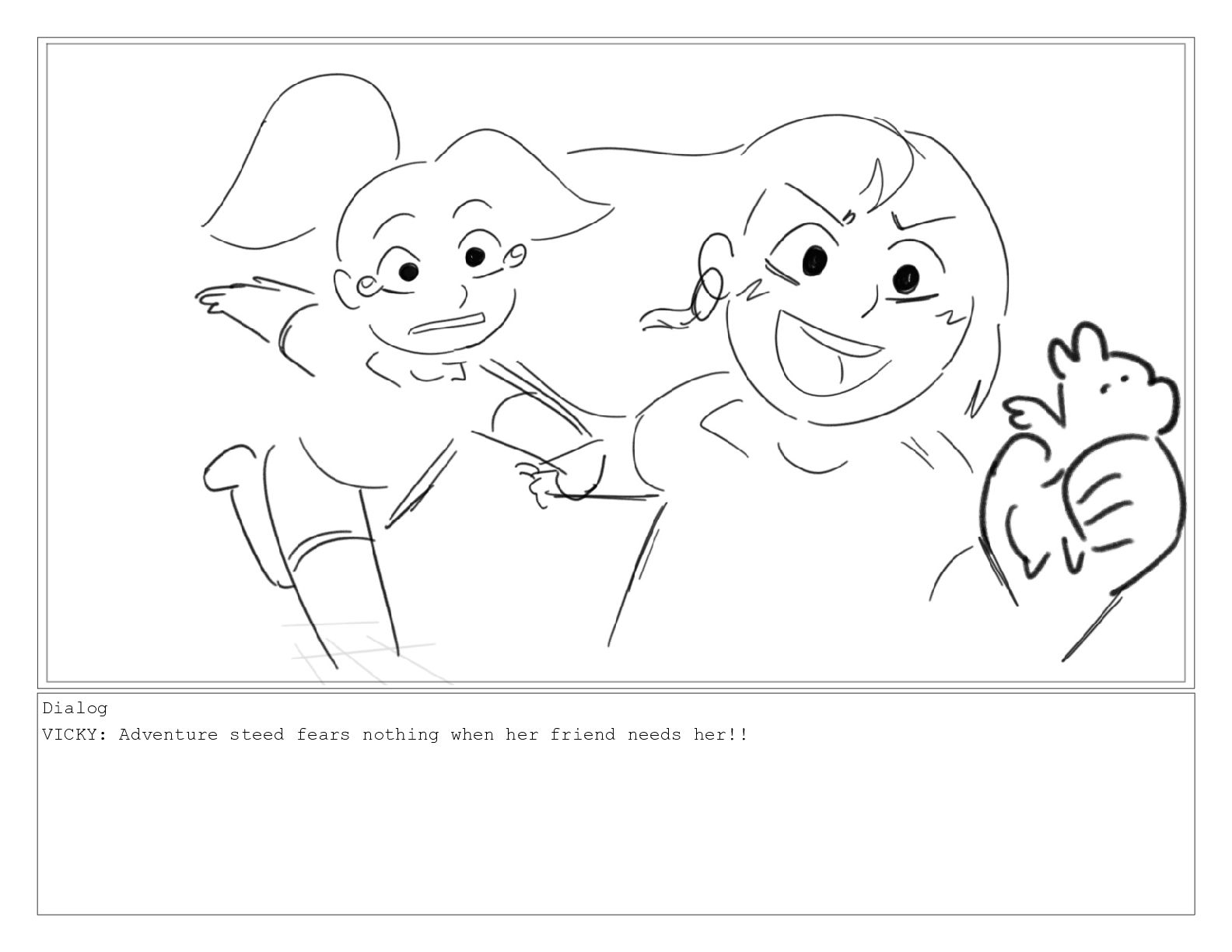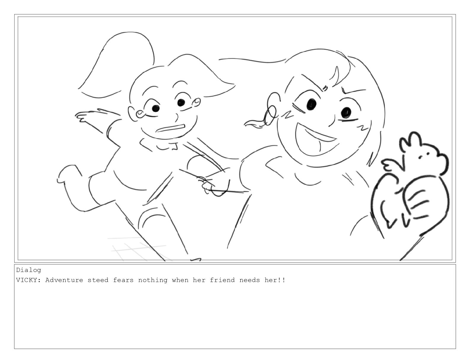 Dialog VICKY: Adventure steed fears nothing when her friend needs