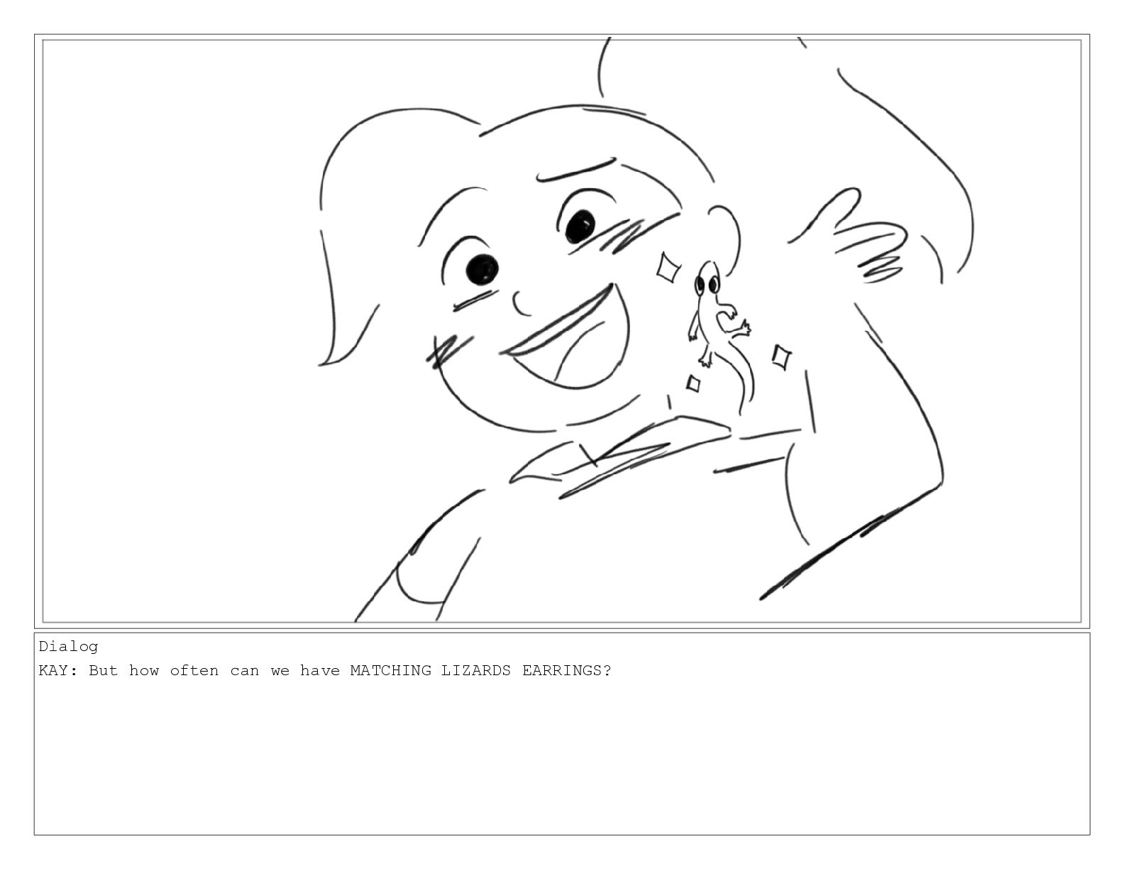 Dialog KAY: But how often can we have MATCHING LIZARDS
