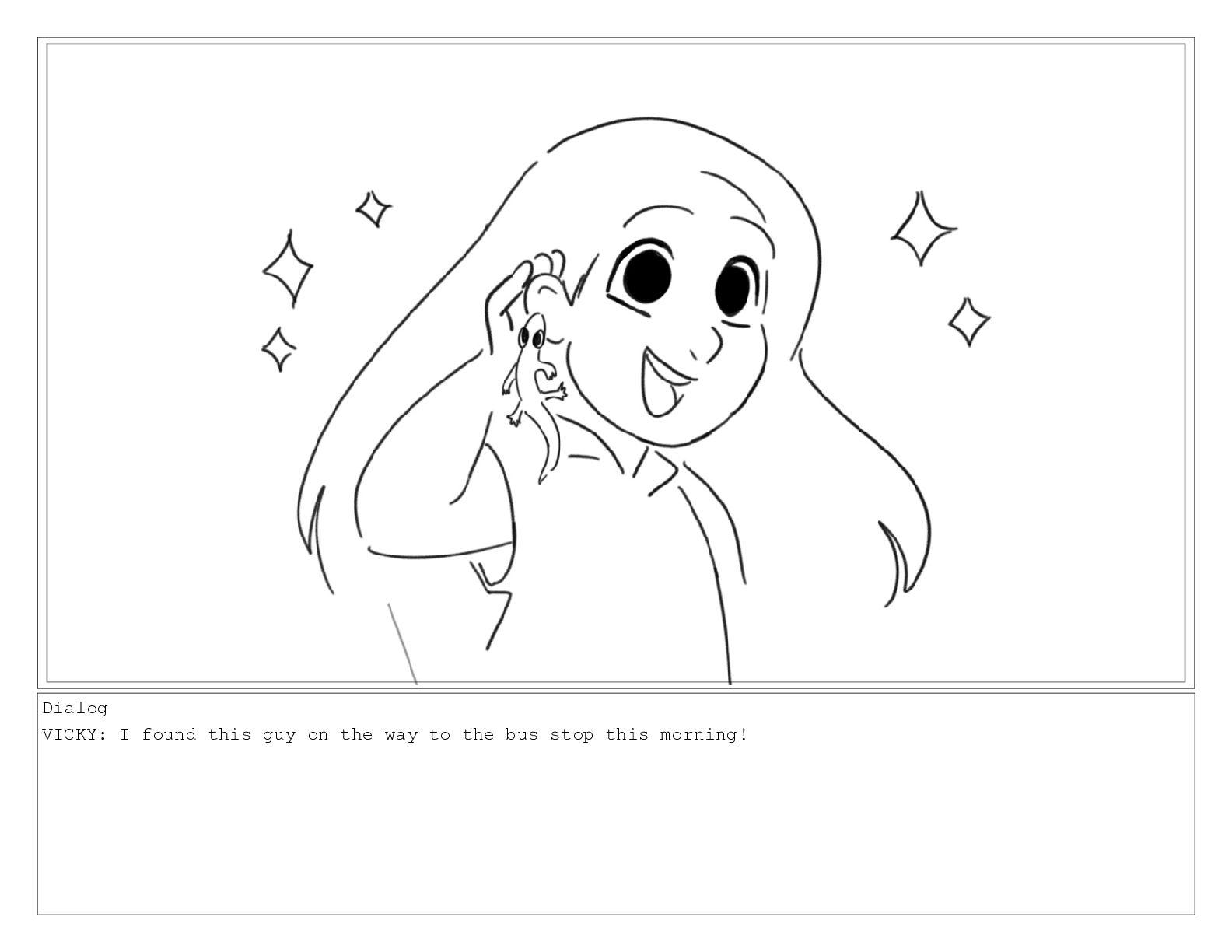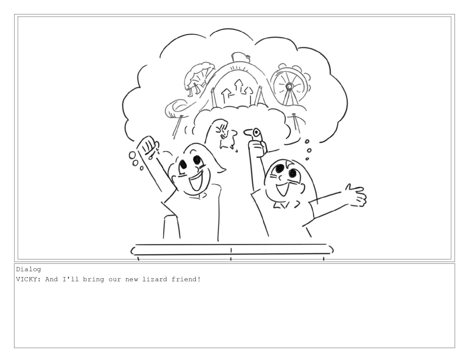 Dialog VICKY: And I'll bring our new lizard friend!