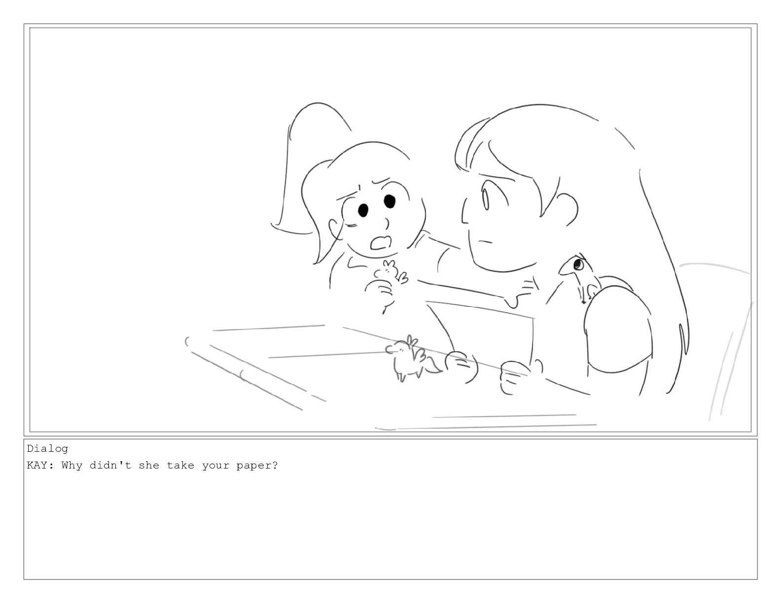 Dialog KAY: Why didn't she take your paper?