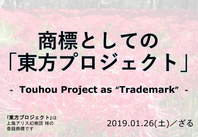 商標としての 「東方プロジェクト」 ‐ Touhou Project as “Trademark” ‐ 2019.01.26(土)/ざる 「東方プロジェクト」は