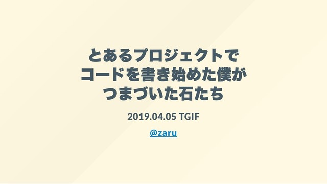 とあるプロジェクトで コードを書き始めた僕が つまづいた石たち 2019.04.05 TGIF @zaru