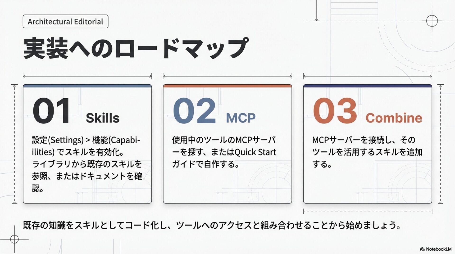 [NotebookLM] [ClaudeCode] 接続を超えて:SkillsとMCPで構築す...