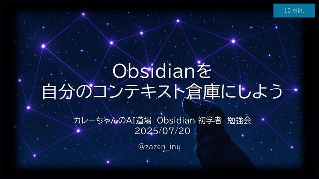 10 min. Obsidianを 自分のコンテキスト倉庫にしよう カレーちゃんのAI道場 Obsidian 初学者 勉強会 2025/07/20 @zazen_inu