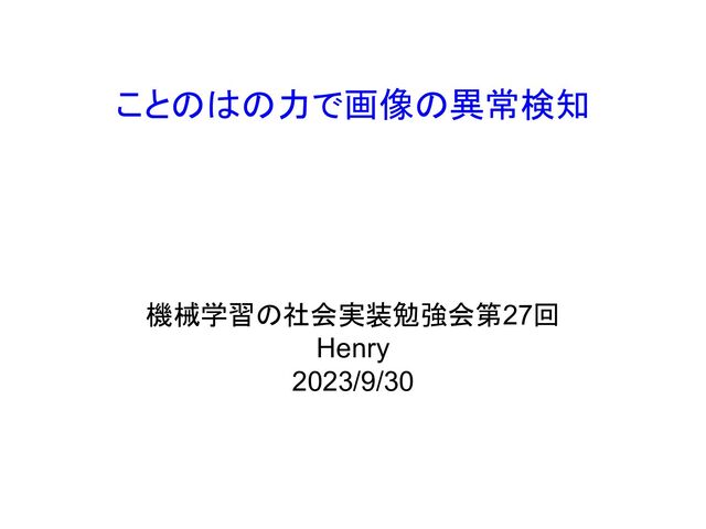 ことのはの力で画像の異常検知 機械学習の社会実装勉強会第27回 Henry 2023/9/30