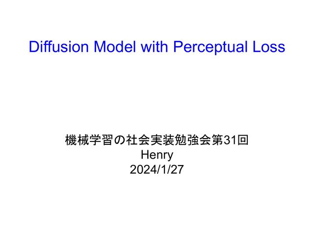 Diffusion Model with Perceptual Loss 機械学習の社会実装勉強会第31回 Henry 2024/1/27