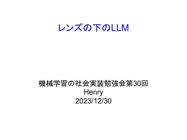 レンズの下のLLM 機械学習の社会実装勉強会第30回 Henry 2023/12/30