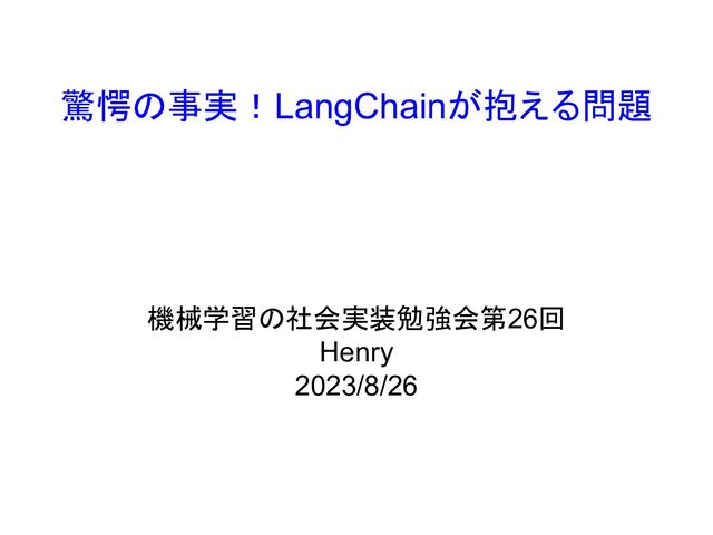 驚愕の事実!LangChainが抱える問題 機械学習の社会実装勉強会第26回 Henry 2023/8/26