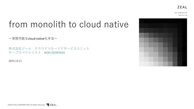 1. ©2023 ZEAL CORPORATION. All Rights Reserved. ~実現可能なcloud-native化手法~ from monolith to