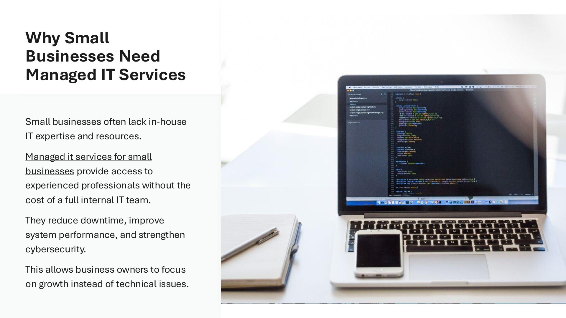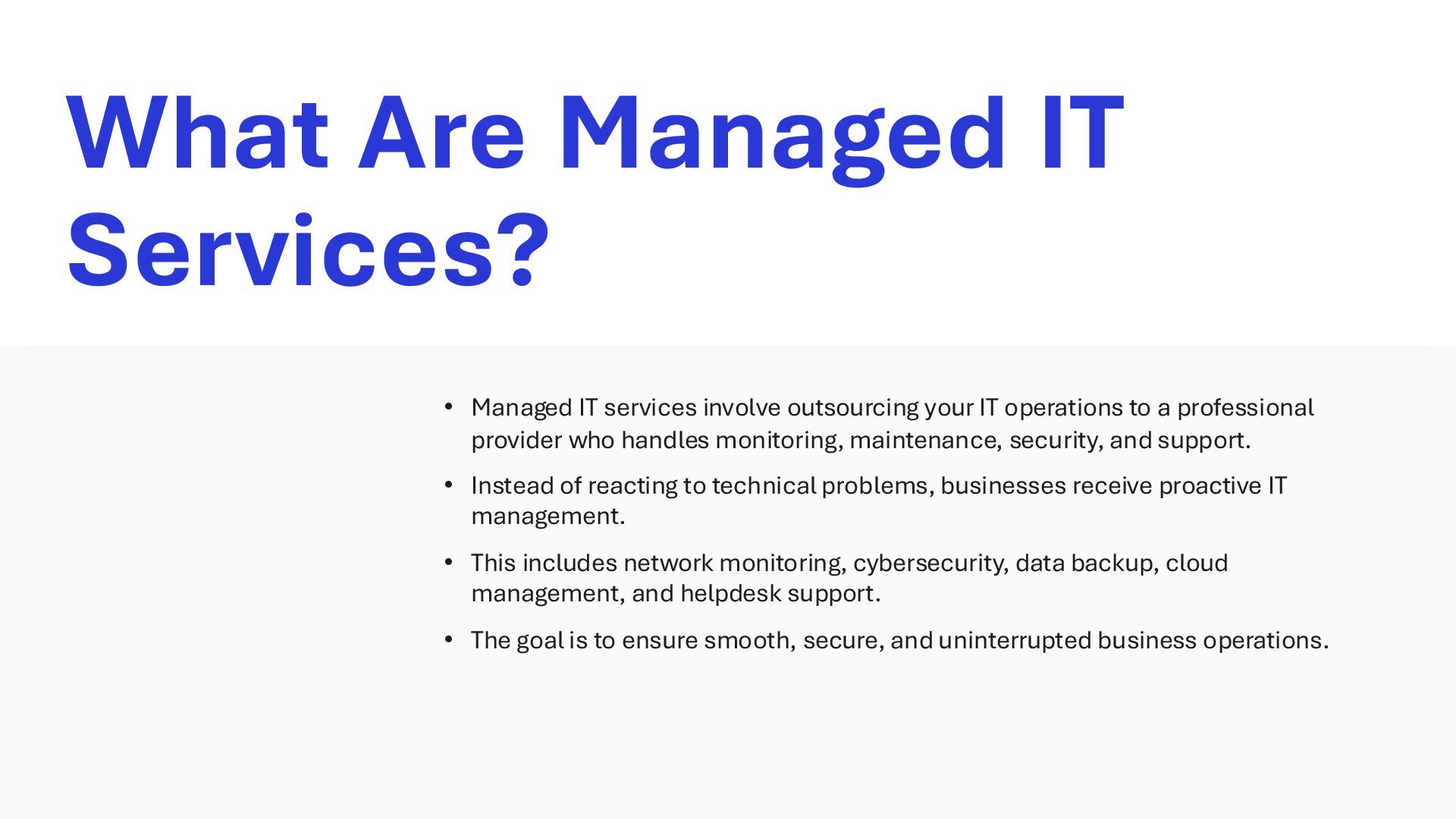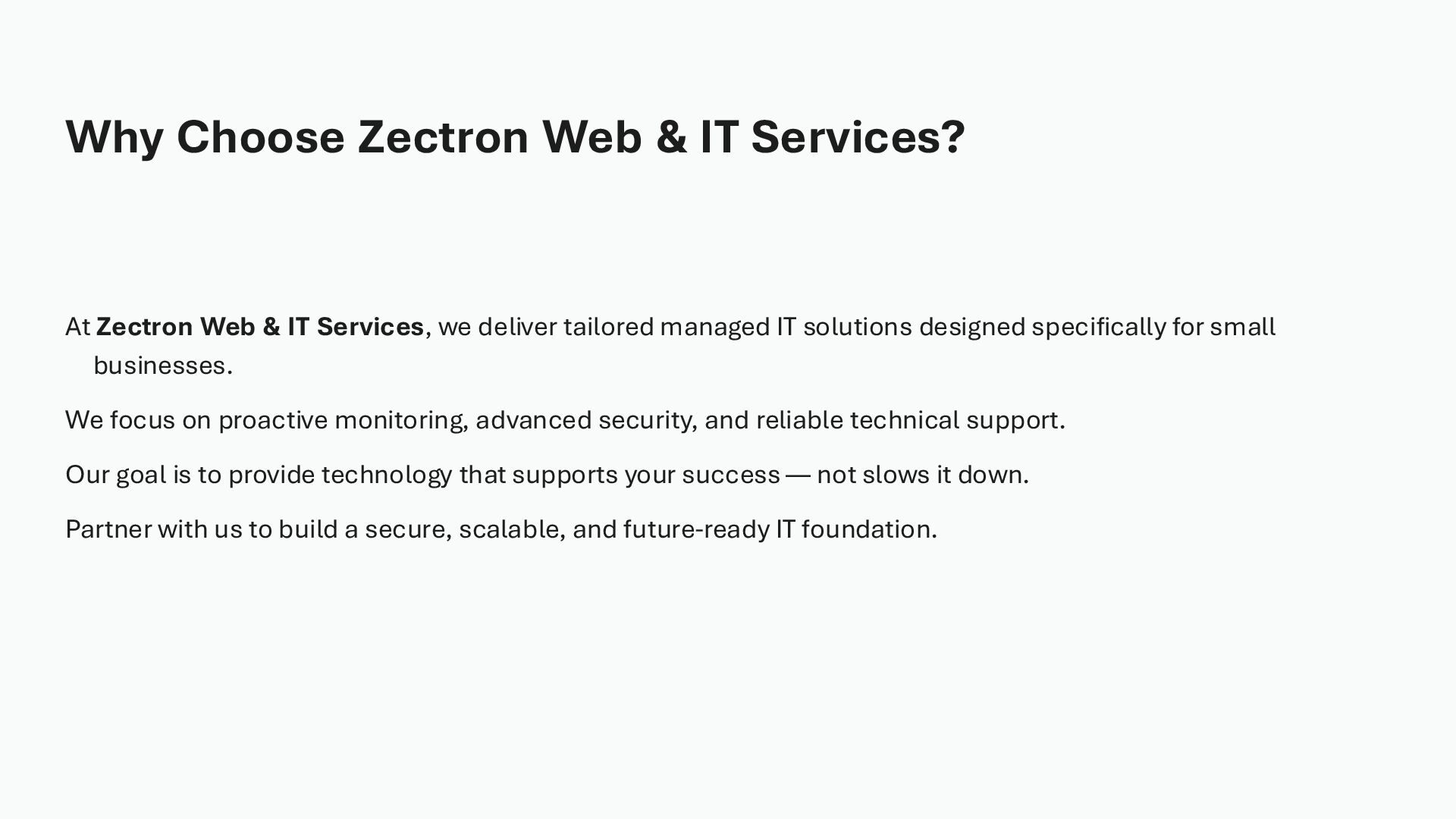 Managed it services for small businesses provide proactive IT support, cybersecurity protection, and reliable system management to ensure smooth daily operations. These services help reduce downtime, control costs, and improve overall productivity without the need for an in-house IT team. With scalable solutions and 24/7 monitoring, small businesses can grow confidently and securely. Zectron Web & IT Services delivers tailored IT solutions designed to support long-term success and digital growth. https://www.zectron.com.au/service/it-services/