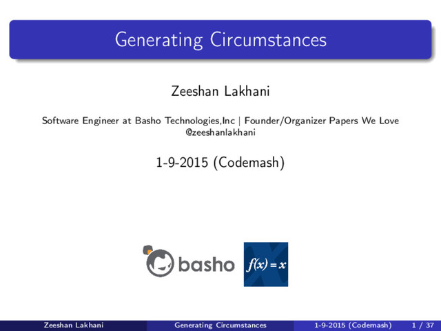 Most samples, fixtures, stubs, and repetitive test-cases tend to fall short of completing their intended storyline: representing the range of possible values that will interact with a designated specification, whether that refers to a single function or a more integrated system. Why not just set some bounded constraints and generate a more exhaustive set of circumstances that your program or system is contracted and believed to satisfy? In this talk, through examples in Clojure’s test.check and Erlang’s QuickCheck, I’ll demonstrate how to easily compose and apply generators for various use-cases, including generating data from schema/validation libraries like Clojure’s Prismatic Schema and Herbert and using a finite state machine to model stateful code with side-effects via Erlang QuickCheck’s eqc_statem. We can apply these generations toward all kinds of problem spaces: from testable database environments to property-based tests for capturing what’s true/valid and what better be false.