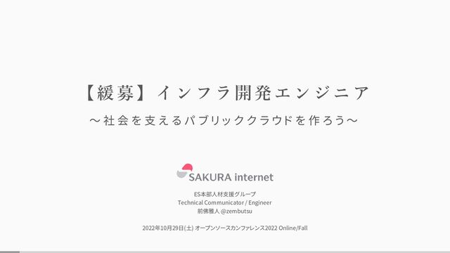 創 業 年 月 日 1996年12月23日 (会社設立は1999年8月17日) 上 場 年 月 日 2005年10月12日(マザーズ) 2015年11月27日(東証一部 (現プライム市場) へ市場変更) 資 本 金 22億5,692万円 従 業 員 数 723名(連結) 会社概要 「 や り た い こ と 」 を 「 で き る 」 に 変 え る 私たちは「熱量」を持って挑戦する人々の夢を全力で応援します。 (※2022年6月末) さくらインターネット創業 1996 1996年12月に現社長の田中邦裕が、 舞鶴高専在学中に学内ベンチャーとして創業。 1999 株式会社を設立/最初のデータセンター開設 1999年8月に株式会社を設立。10月には、 第1号となるデータセンターを本町に開設。 2011 石狩データセンター開設/さくらのクラウド提供開始 2011年11月、北海道石狩市に国内最大級の郊外型大規模データセンターを 開設。あわせてIaaS型パブリッククラウド「さくらのクラウド」を提供開始。 2016 働き方改革でテレワークなどの独自制度「さぶりこ」導入 生活スタイルや事情にあわせ、柔軟な働き方ができる複数の制度を導入開始。 2021 さくらのクラウドが ISMAP に登録 2021年12月、政府情報システムのためのセキュリティ評価制度 (ISMAP)のクラウドサービスリストにさくらのクラウドが登録。 2010 さくらのVPS提供開始 2020 さくらの専用サーバPHY提供開始 2004 さくらのレンタルサーバ提供開始