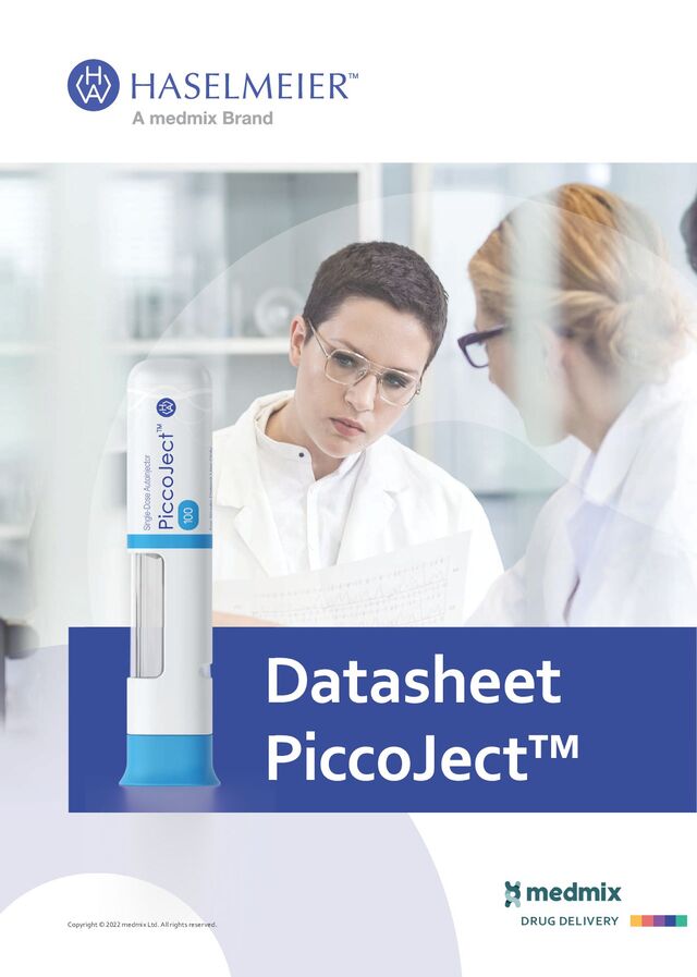 3 ゆっくりと押し下げ ます (ニードルガー ドが下がり、 カチッ という音と触感がし ます)。 4 そのまま投与が終了 するのを待ちます(ド ラッグ ・ ウィンドウと ステータス ・ インジ ケータが黄色に変わ ります)。 5 インジケータが変化 してからさらに 3 秒 待つと、 投与が完 了します。 6 皮膚からオートイン ジェクターを外し、 そのまま専用のご み箱に捨てます。 デモンストレーション例です。オートインジェクターの 使用方法については、販売製品のIFUを参照しています。 1 2 3 4 Remove cap by pulling it away from the autoinjector body Align with body (either abdomen or thigh) Gently press down so that the needle guard depresses (you may hear or feel a click) Hold still and wait for the simulated injection to nish (plunger window and status indicator changes to yellow) Wait a fu seconds indicator allow the complete The devices you are about to handle are basic prototypes of a medical device called an autoinjector. They do not contain needles or any drugs. A description of the parts of the device can be found on the right. The task steps to use the device can be found below. Instructions Autoinjector Cap 1 2 Remove cap by pulling it away from the autoinjector body Align with body (either abdomen or thigh) Gently pr that the n depresses hear or fe The task steps to use the device can be found be 2 3 4 5 y from r body Align with body (either abdomen or thigh) Gently press down so that the needle guard depresses (you may hear or feel a click) Hold still and wait for the simulated injection to nish (plunger window and status indicator changes to yellow) Wait a further 3 seconds after the indicator changes to allow the injection to complete Remove th autoinject skin and p sharps bin you are about to handle are basic prototypes of a ice called an autoinjector. They do not contain any drugs. n of the parts of the device can be found on the right. ps to use the device can be found below. uctions Autoinjector Cap Needle guard Drug window 4 5 6 own so guard may ck) Hold still and wait for the simulated injection to nish (plunger window and status indicator changes to yellow) Wait a further 3 seconds after the indicator changes to allow the injection to complete Remove the autoinjector from the skin and place in the sharps bin ypes of a ontain on the right. Autoinjector Cap Needle guard End of dose indicator Drug window 3 4 5 6 dy en or Gently press down so that the needle guard depresses (you may hear or feel a click) Hold still and wait for the simulated injection to nish (plunger window and status indicator changes to yellow) Wait a further 3 seconds after the indicator changes to allow the injection to complete Remove the autoinjector from the skin and place in the sharps bin ndle are basic prototypes of a ector. They do not contain device can be found on the right. can be found below. Autoinjector Cap Needle guard End of dose indicator Drug window 1 2 3 4 Remove cap by pulling it away from the autoinjector body Align with body (either abdomen or thigh) Gently press down so that the needle guard depresses (you may hear or feel a click) Hold still and wait for the simulated injection to nish (plunger window and status indicator changes to yellow) Wait a fur seconds a indicator c allow the i complete The devices you are about to handle are basic prototypes of a medical device called an autoinjector. They do not contain needles or any drugs. A description of the parts of the device can be found on the right. The task steps to use the device can be found below. Instructions Autoinjector Cap PiccoJectTM の使用方法