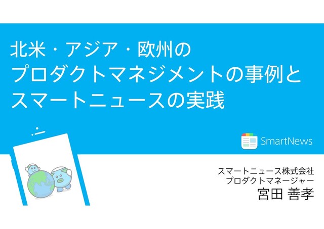 北米・アジア・欧州におけるカンファレンスやトレーニングに参加し、拾ってきたPMの方法論を、スマートニュース内でどのように実践しているかを綴った。 2018/11/07に、product manager conference 2018 ( https://2018.pmconf.jp/ )で講演。
