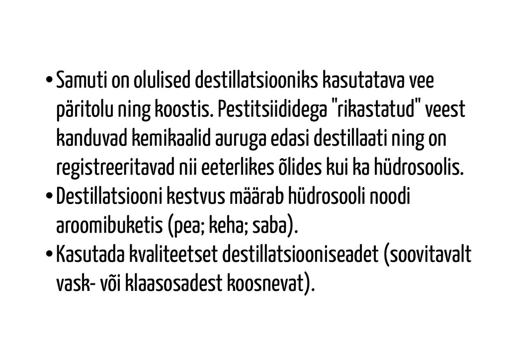 production via steam distillation: Case study using Lavandin (Lavandula x intermedica) (Tannous 2004) leiti, et hüdrosoolis sisalduv vesi pärineb nii kuumutusveest, kui taimede rakkudest. Taimse päritoluga vee kogust hinnati antud uutingus kohaselt 29%. Antud uuringus puudub märge selle kohta, kui kaua ning millistes tingimustes taimi peale korjamist ja enne destillatsiooniprotsessi transporditi ning milline ajavahe oli korje ning destillatsiooni vahel. Küll aga on teada, et taimed transporditi USA läänerannikult Washingtoni osariigist idarannikule destillatsiooniks. Lisaks on teada, et uuringus kasutatud taimed korjati septembrikuu lõpul, kui peamine korjeperiood on tegelikult möödas ning taimede veesisaldus on mõne võrra langenud. Kui isegi sellistel eeltingimustel valminud hüdrosool sisaldas 29% taimede rakuvett, siis võib oletada, kui suur on rakuvee kontsentratsioon destilleerides värskeid taimi vahetult peale korjamist. Juba mõne tunnisel seismisel taimed närbuvad ning osad taimed võivad kiiresti kaotada kuni 75% oma veemassist.