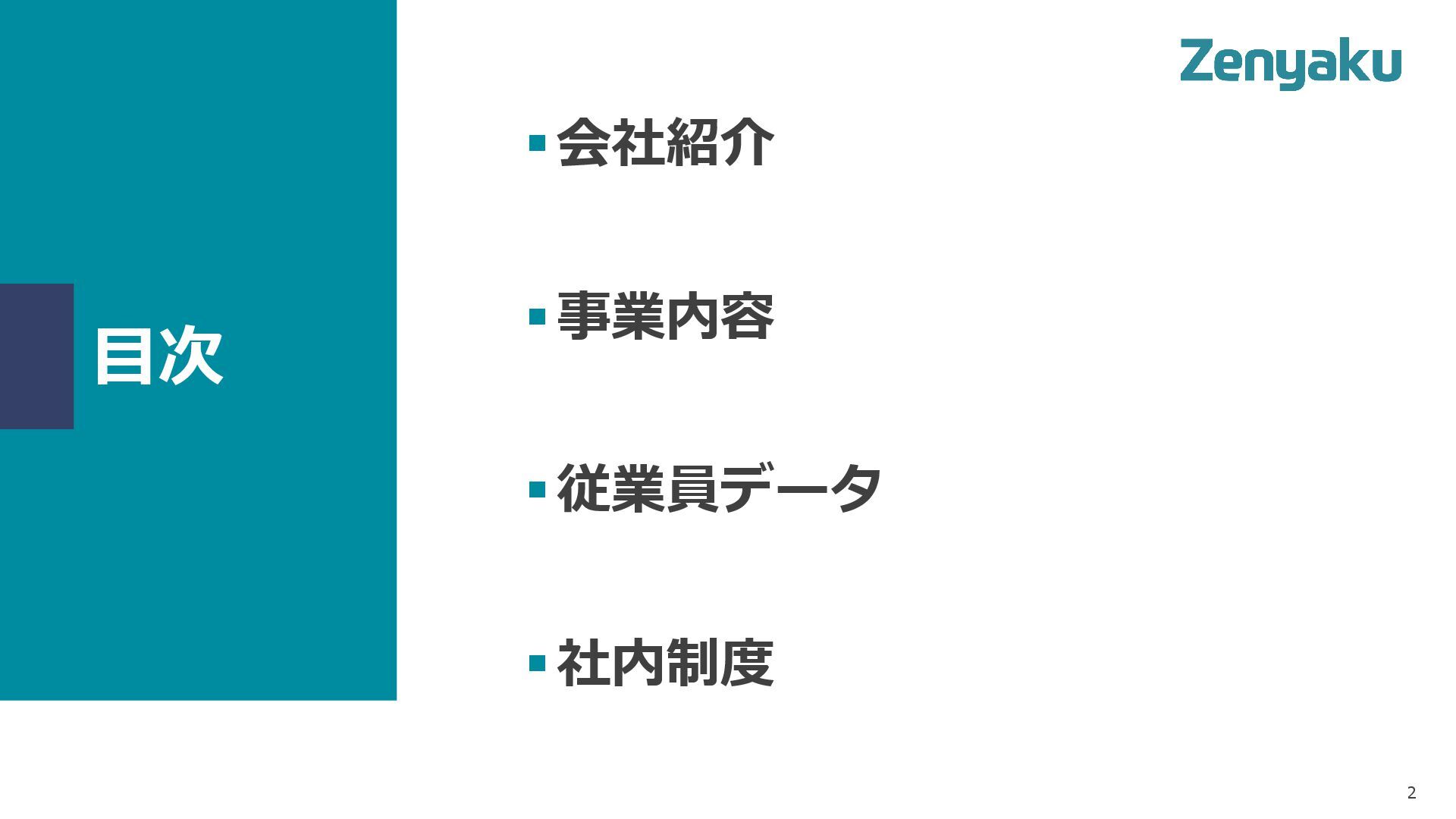 目次 ▪会社紹介 ▪事業内容 ▪従業員データ ▪社内制度 2