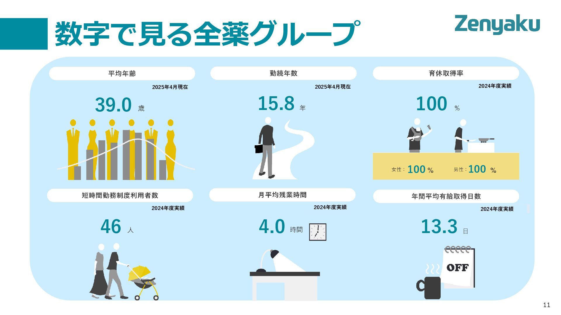 数字で見る全薬グループ 11 2021年度実績 2021年度実績 2025年4月現在 2025年4月現在 2024年度実績 2024年度実績 2024年度実績 39.0