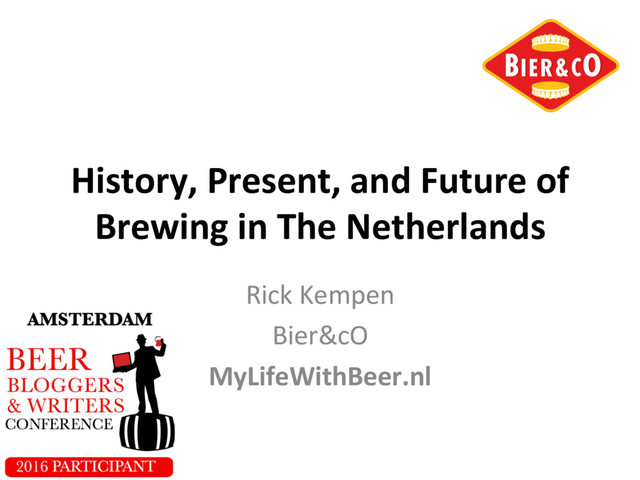 History, Present, and Future of Brewing in The Netherlands: We'll hear from Michel Ordeman, "Head of Church" at Jopenkerk Brewery and co-founder of the Campaign for Netherlands Beer Styles, and Rick Kempen of Bier & Co The new beer styles are booming in The Netherlands yet there is a strong component of traditional Dutch culture in the brewing industry.