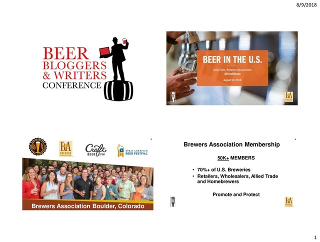 they package could impact the bottom line. Government Affairs 40 • OSHA How to Survive an OSHA Inspection Online Brewery Safety Training – 25,000 lessons completed! • Brewers’ Responsibilities and Obligations under the U.S. Food Safety Modernization Act (FSMA) Good Manufacturing Practices for Craft Brewers – • Food Safety Plan for Craft Brewers • Wastewater Management Guidance Manual Technical Resources 42 Hops • Citra has replaced Cascade as the largest acreage aroma hop variety. • As of 2018, Idaho has surpassed Oregon as the number 2 hop producing state as well as number 2 in acreage Malt • There are now at least 50 US craft Maltsters. Craft Maltsters Guild Member Malt Houses https://craftmalting.com Ingredients 43 44