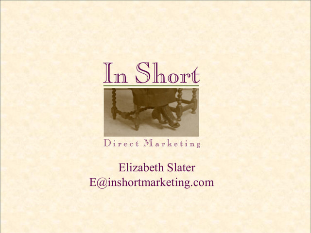 Learn innovative techniques to ensure first-time visitors become long term customers. Tips and tactics and in-depth information on what you should know about your customers to keep them coming back. Our speaker is Elizabeth Slater from In Short Direct Marketing.