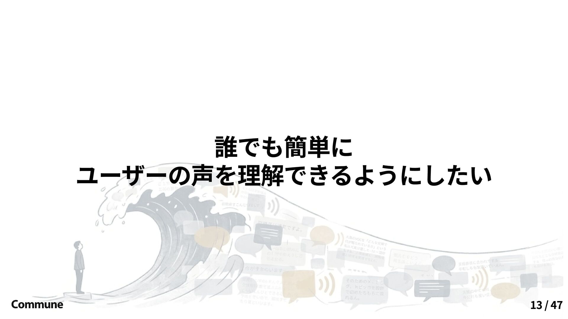 誰でも簡単に ユーザーの声を理解できるようにしたい 13 / 47