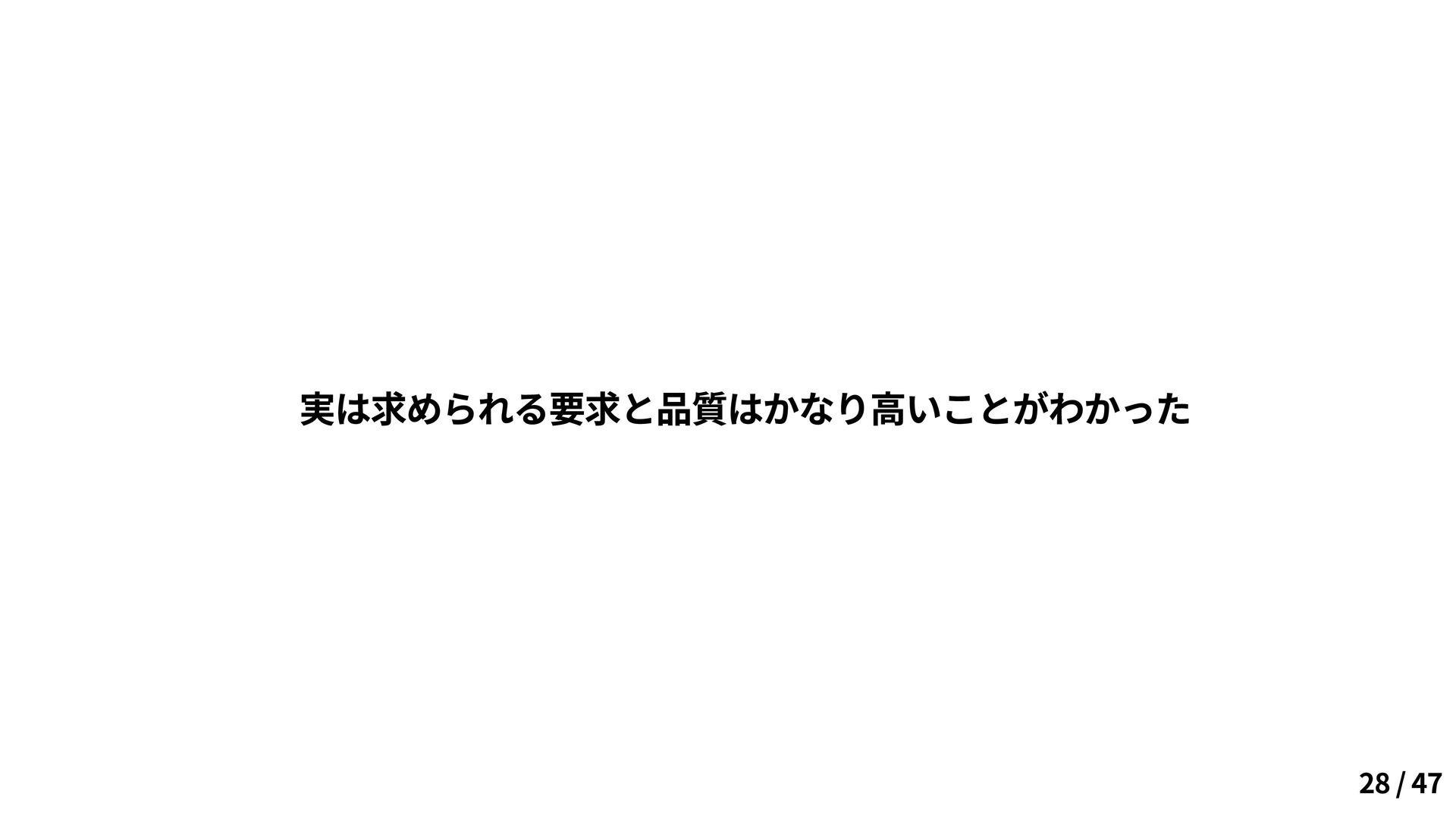 実は求められる要求と品質はかなり高いことがわかった 28 / 47