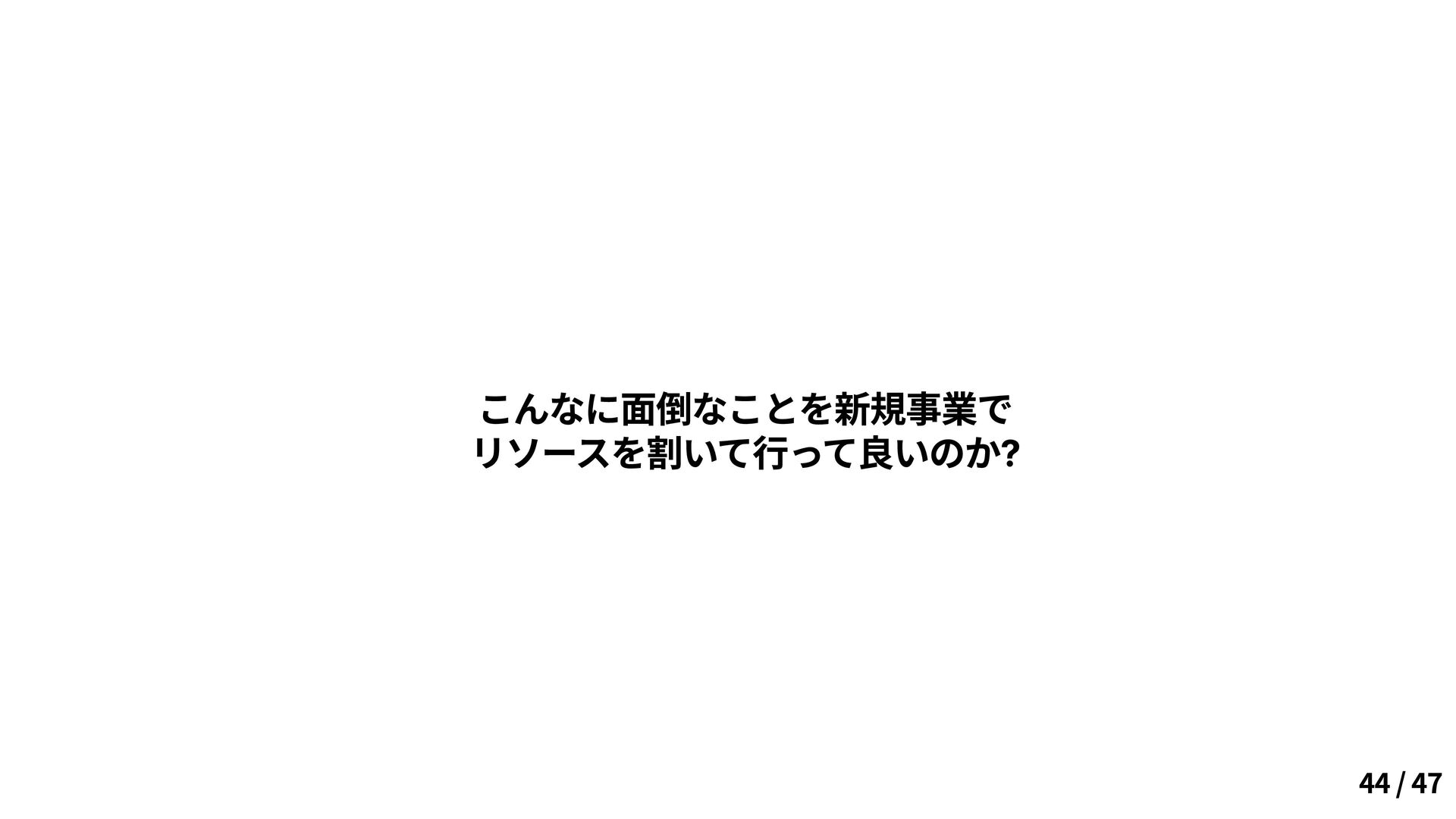 こんなに面倒なことを新規事業で リソースを割いて行って良いのか? 44 / 47